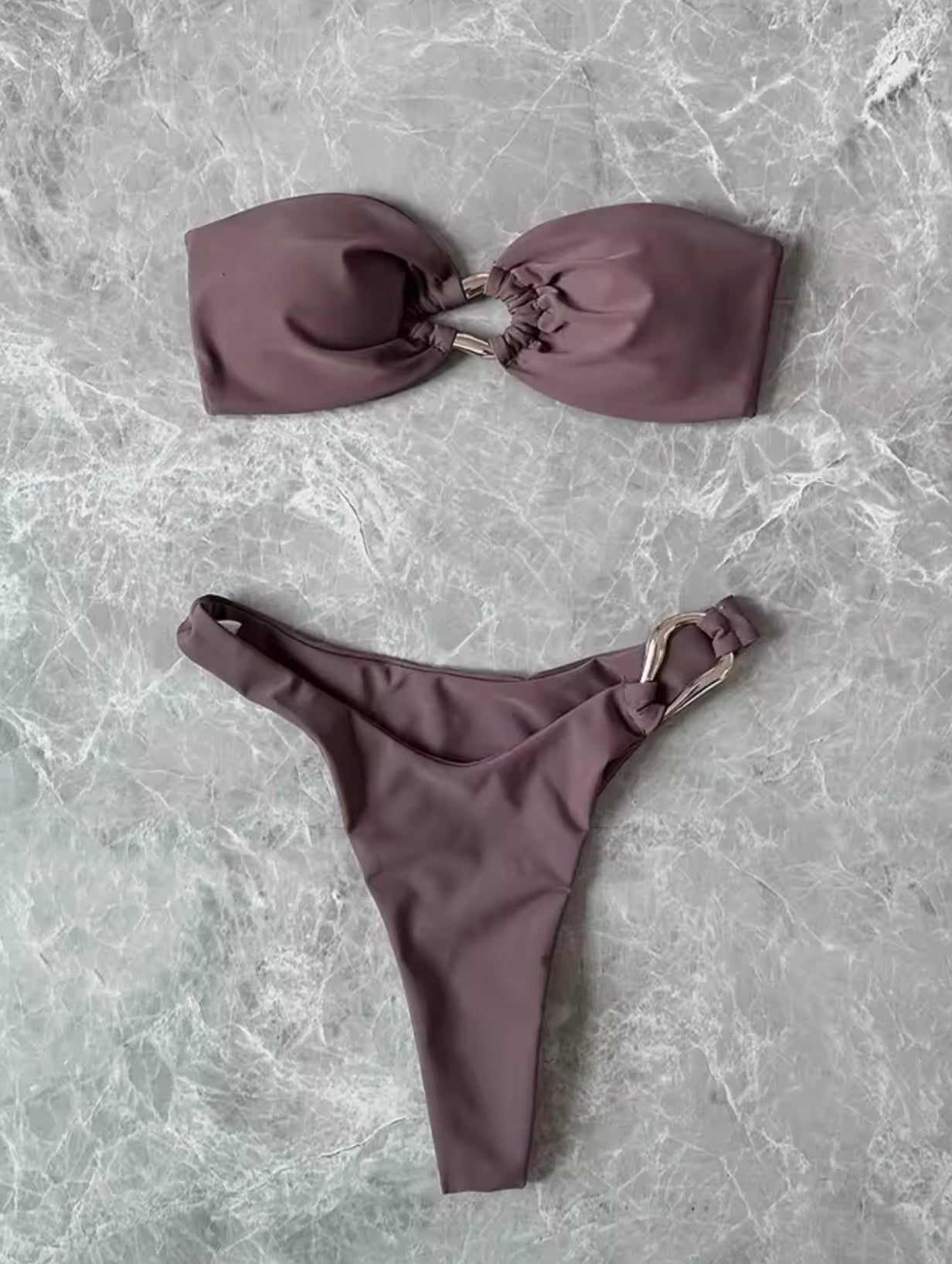 Majestic Shine Bikini is a high-end beachwear piece that combines radiant metallic shine with bold silhouette and sculpted elegance.