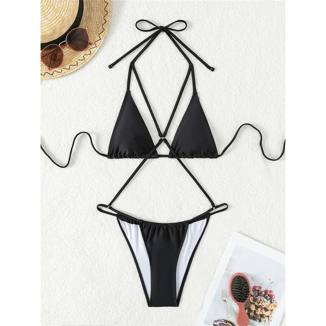 The Vanta Bikini is made for women who own their power — a statement piece that turns heads with every step. Featuring ultra-thin straps and sharp cutouts that trace the curves of the body, it redefines the classic black bikini with fearless sophistication.